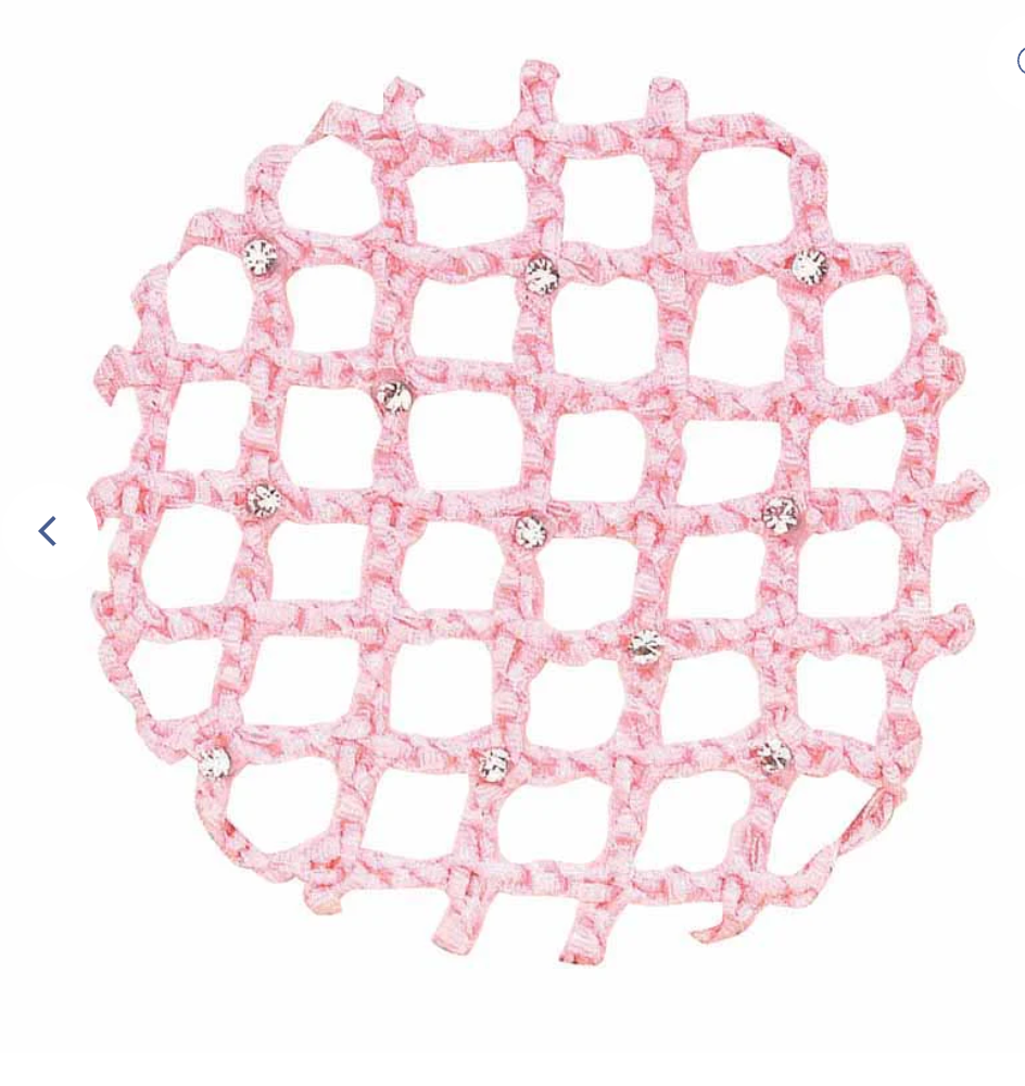Lattice bun cover with rhinestones.